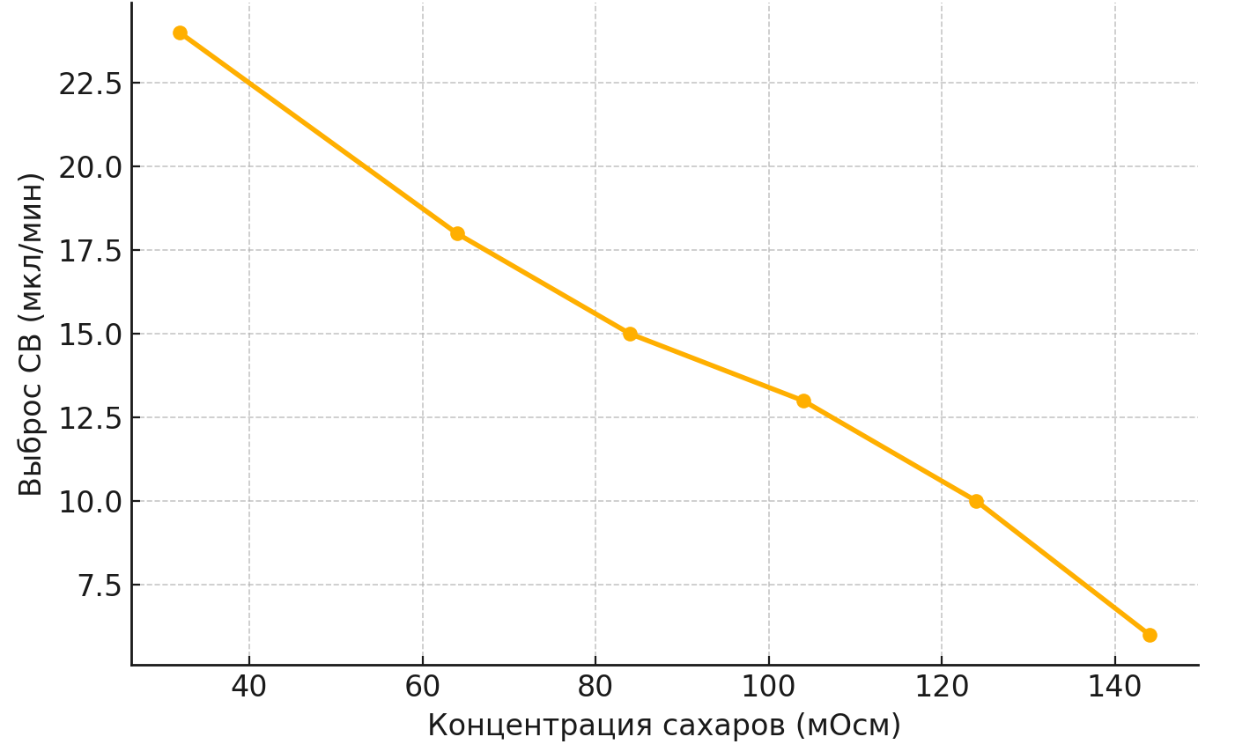 Учёный провёл эксперимент с эвгленой зелёной. Он помещал особей одного вида в растворы с разной концентрацией сахаров (осмолярностью) и измерял частоту выброса сократительной вакуоли (СВ) в минуту. Результаты представлены на графике. Какую нулевую гипотезу мог сформулировать исследователь перед началом эксперимента? Зачем в эксперименте использовали эвглен только одного вида, а не разных? Почему важно проводить измерения при одинаковой освещённости? Ответ поясните.