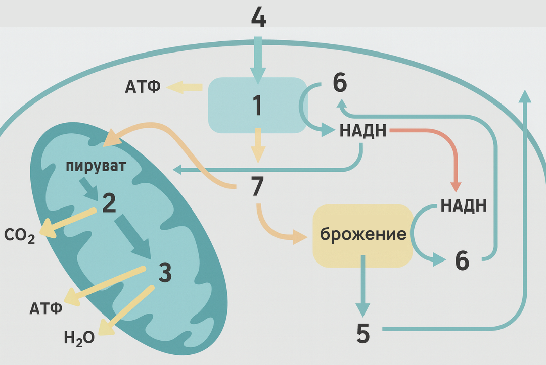 Какой процесс изображен на рисунке в целом? Перечислите его этапы. Какое соединение изображено под цифрой 4? К какому классу органических веществ оно относится? Какой продукт образуется в цитоплазме клетки при расщеплении вещества, обозначенного цифрой 4?
