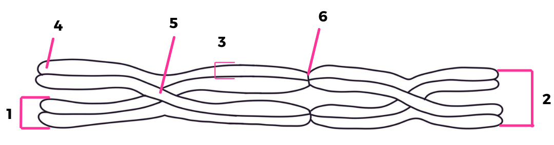 Установите соответствие между характеристиками и элементами бивалента, изображенными на рисунке под цифрами 1, 2, 3: к каждой позиции, данной в первом столбце, подберите соответствующую позицию из второго столбца.