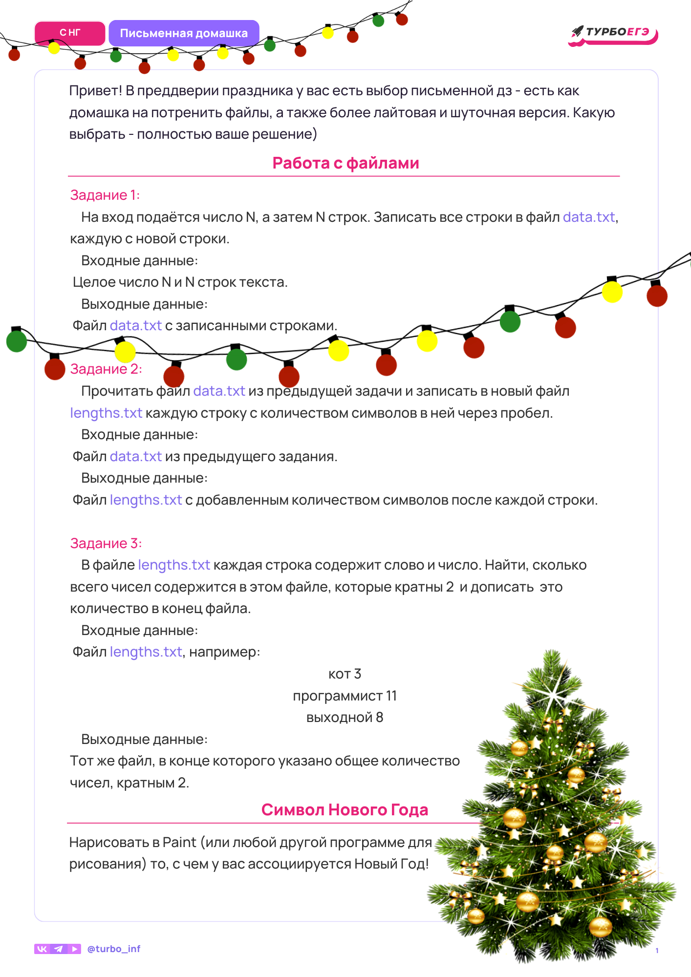 Сегодняшняя письменная домашка особенная: у тебя есть выбор какую сделать)