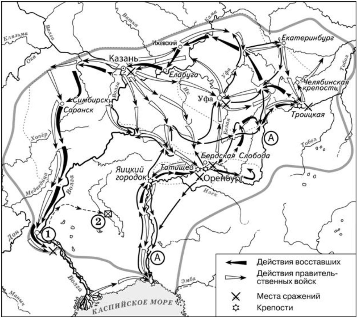 Укажите название города, обозначенного на схеме цифрой «1», в период, к которому относятся события, отраженные на схеме.