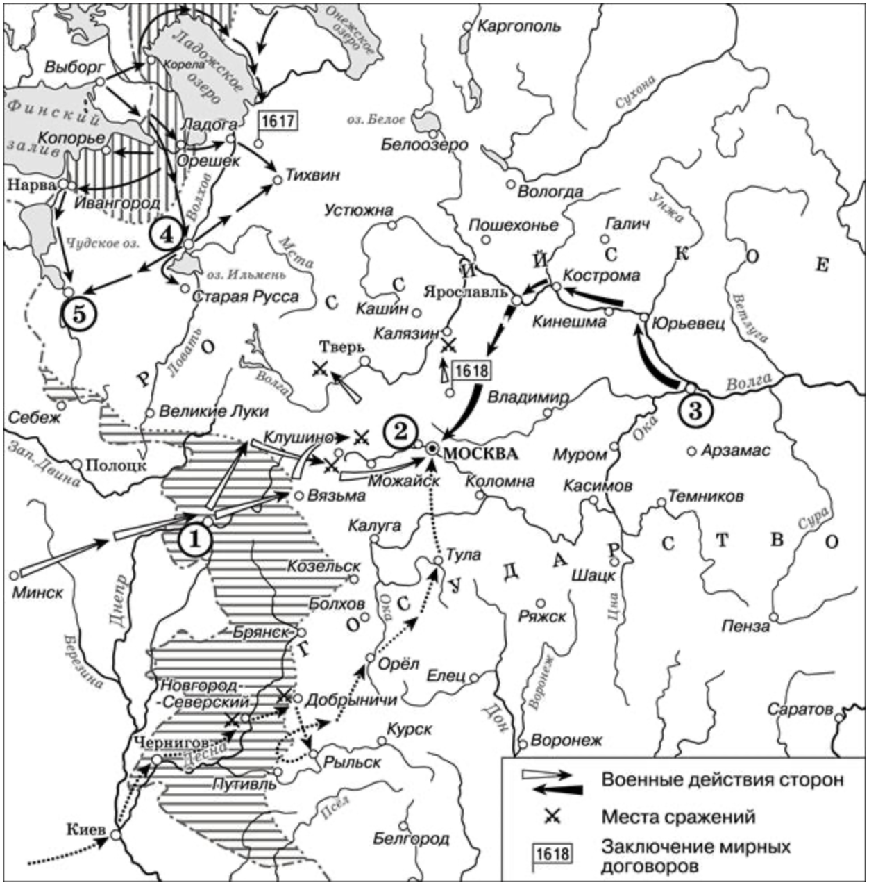 - В ходе обозначенных на схеме событий, город под цифрой «1» подвергся осаде со стороны Речи Посполитой.