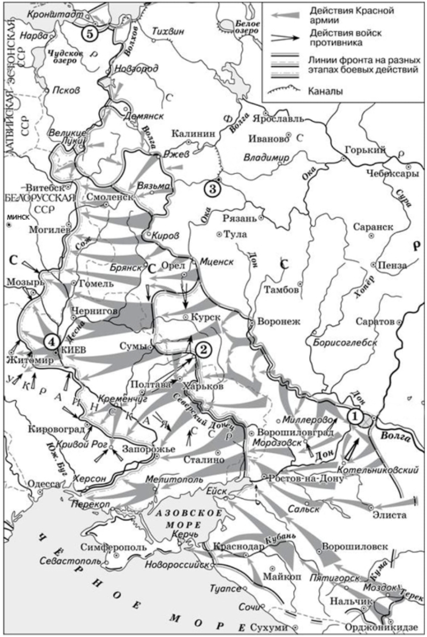 - На схеме обозначены события коренного перелома в ходе Великой Отечественной войны.