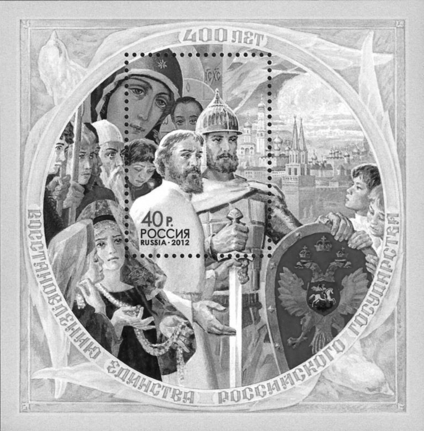 Укажите название исторического периода, которому посвящен данный почтовый блок. Используя изображение и знания по истории, приведите одно любое обоснование Вашего ответа.