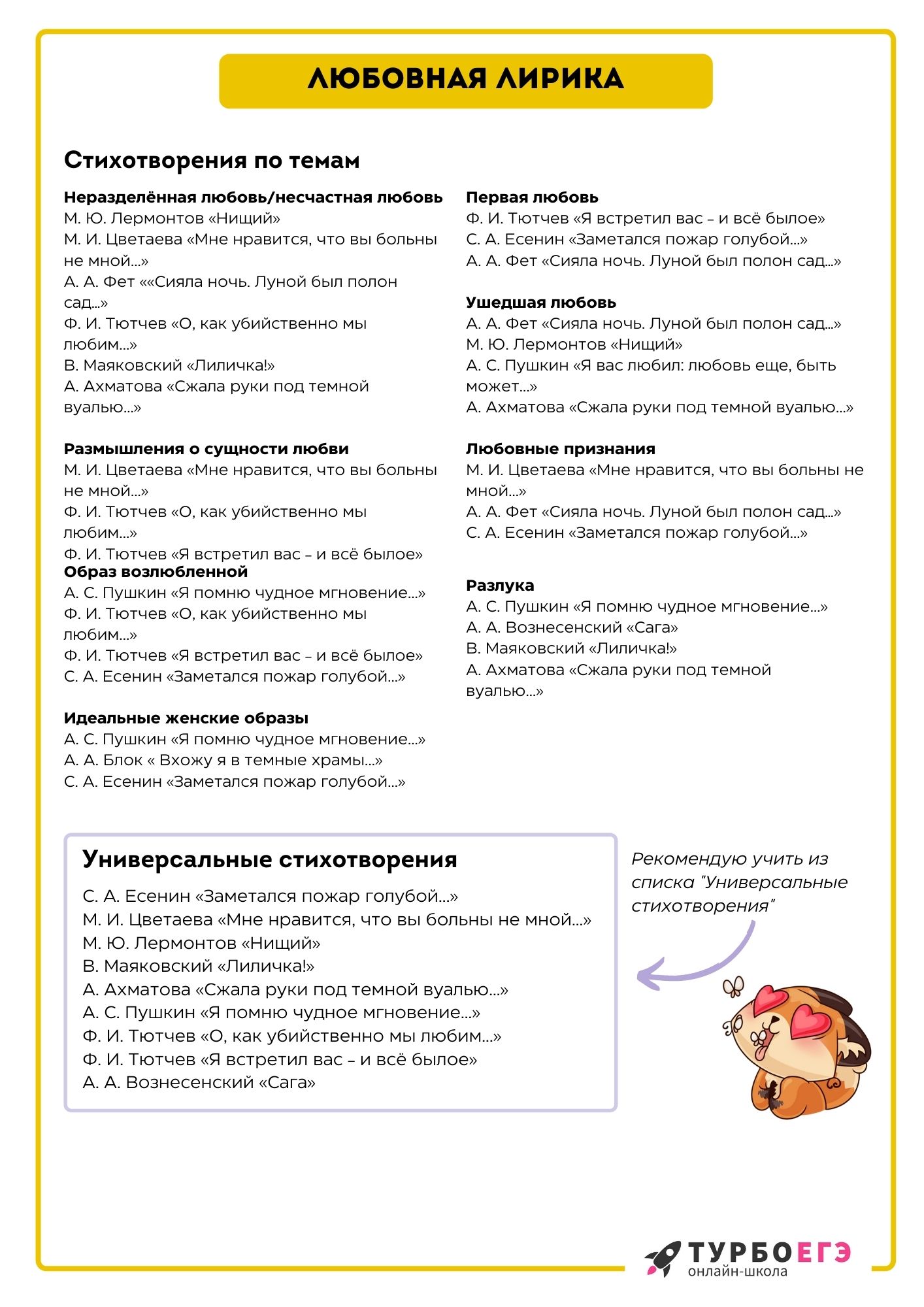 Рекомендую учить стихотворения из списка "Универсальные стихотворения", чтобы охватить все темы, которые могут попасться на экзамене.