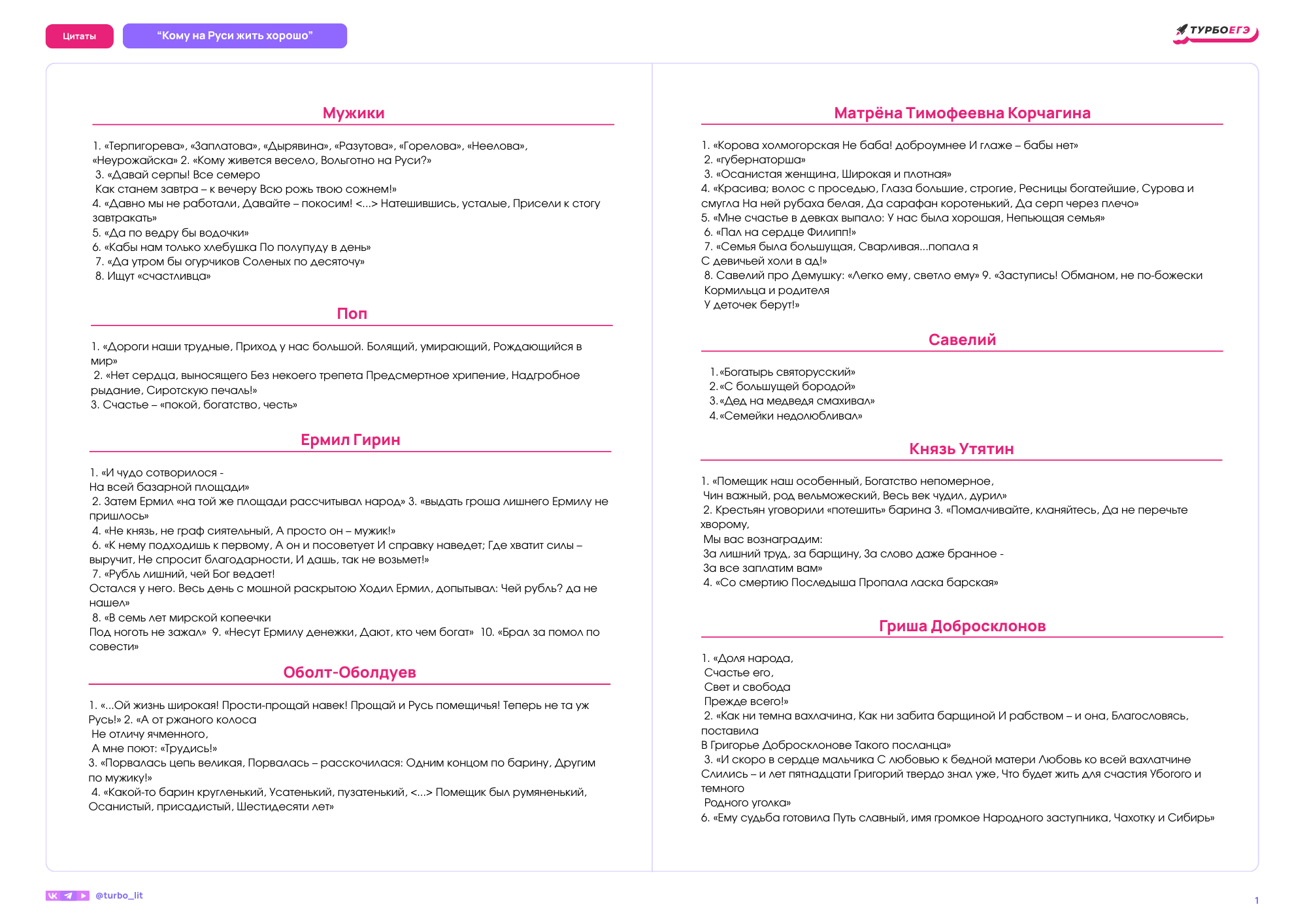 В этой домашке ты найдешь цитаты по следующим произведениям: "КОМУ НА РУСИ ЖИТЬ ХОРОШО"