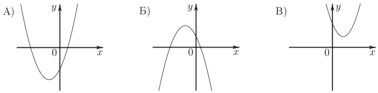На рисунке изображены графики квадратичной функции. Установите соответствие между графиками и знаками коэффициентов $a$ и $c$.