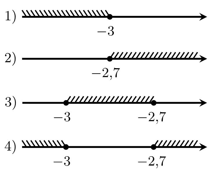 Укажите решение системы неравенств $\{{\table {x+2,7 ≤ 0{,}}; {x+4 ≥ 1};}$
