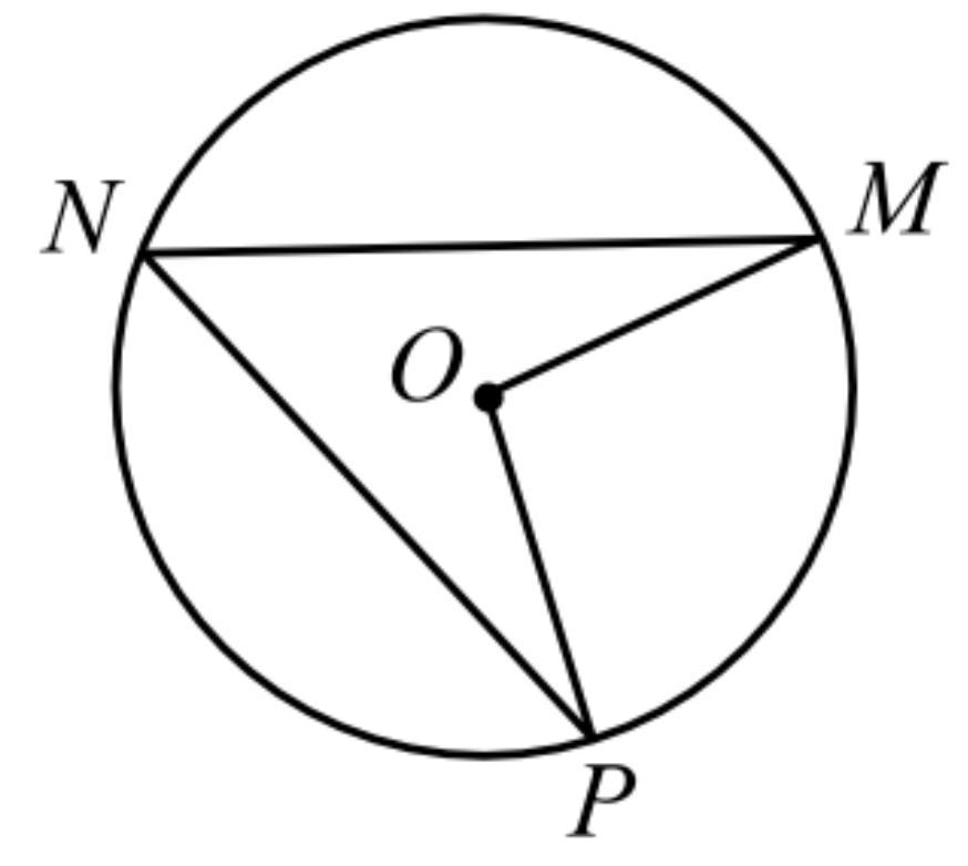 Точка $O$ — центр окружности, на которой лежат точки $M$, $N$ и $P$ таким образом, что $OMNP$ — ромб (см. рис.). Найдите градусную меру острого угла ромба. Ответ дайте в градусах.