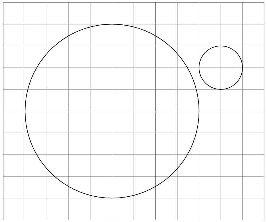 На клетчатой бумаге изображены два круга. Во сколько раз площадь большего круга больше площади меньшего?