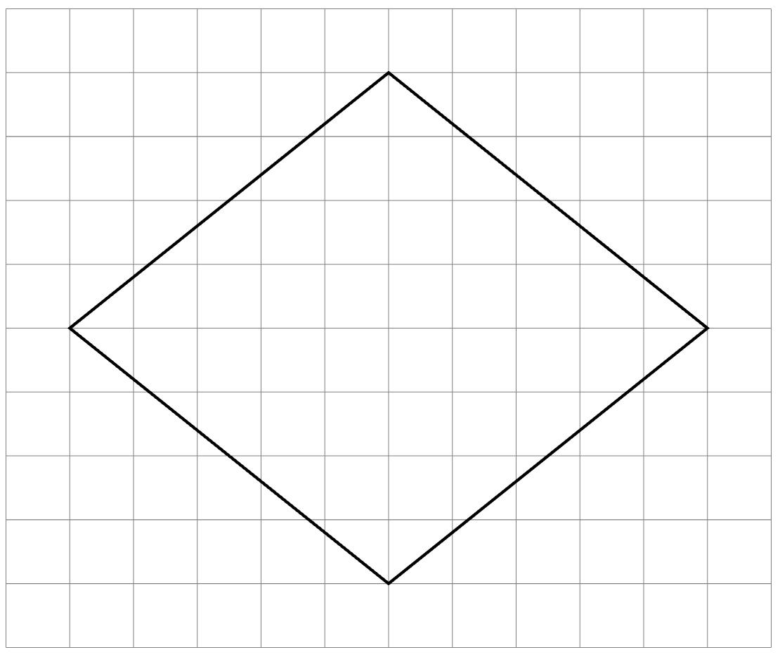 На клетчатой бумаге с размером клетки 1 × 1 изображён ромб. Найдите площадь этого ромба.