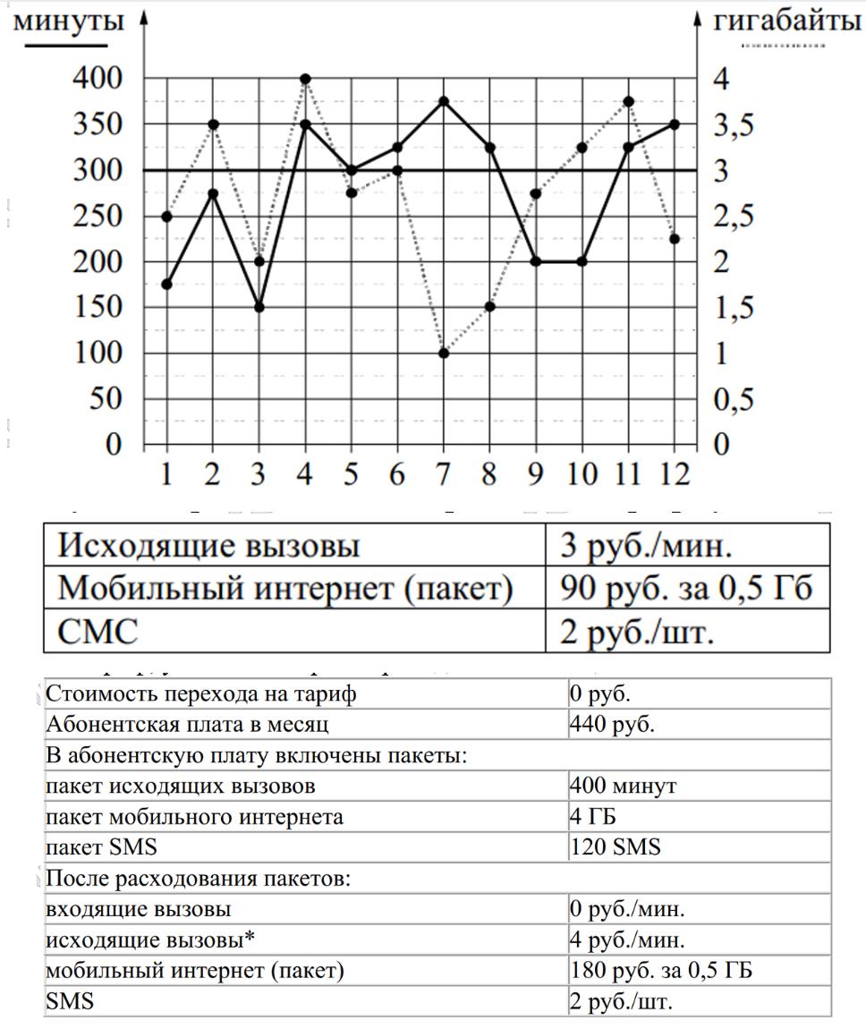 Абонент решает, перейти ли ему на новый тариф, посчитав, сколько бы он потратил на услуги связи за 2019 г., если бы пользовался им. Если получится меньше, чем он потратил фактически за 2019 г., то абонент примет решение сменить тариф. Перейдёт ли абонент на новый тариф? В ответе запишите ежемесячную абонентскую плату по тарифу, который выберет абонент на 2020 год.